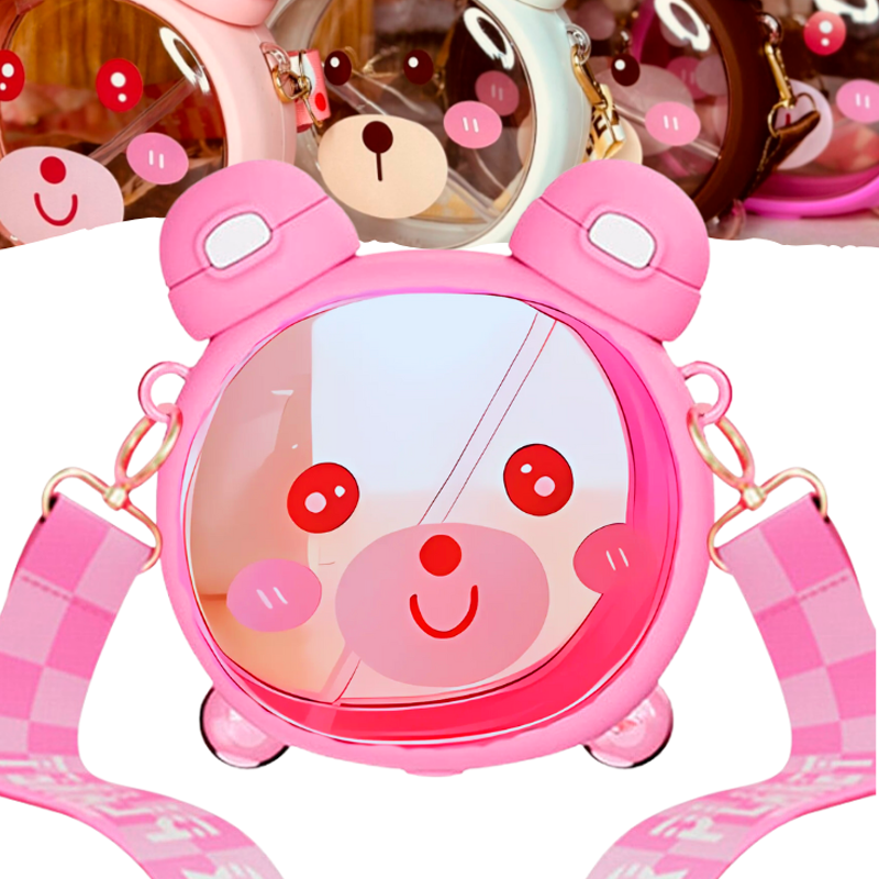 Botella Osito con Correa Doble Pico ROSA