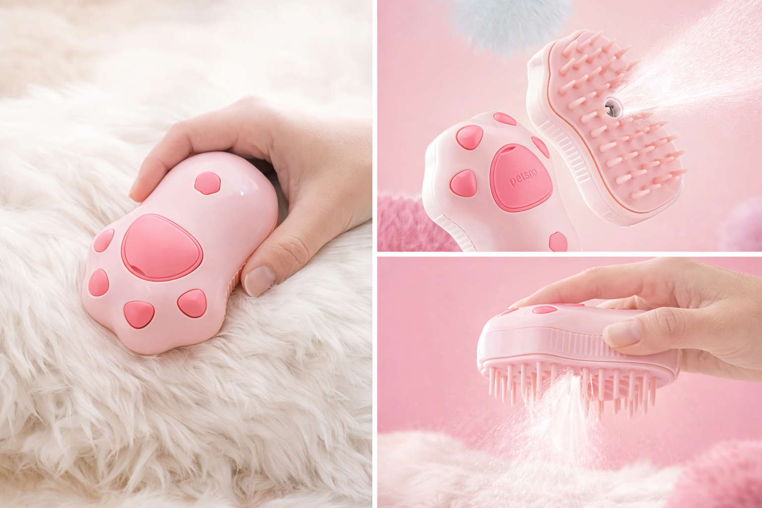 Este dispositivo 3 en 1 no solo cepilla, sino que también masajea y utiliza vapor para eliminar la suciedad y el pelo suelto, mejorando la salud del pelaje de tus mascotas.